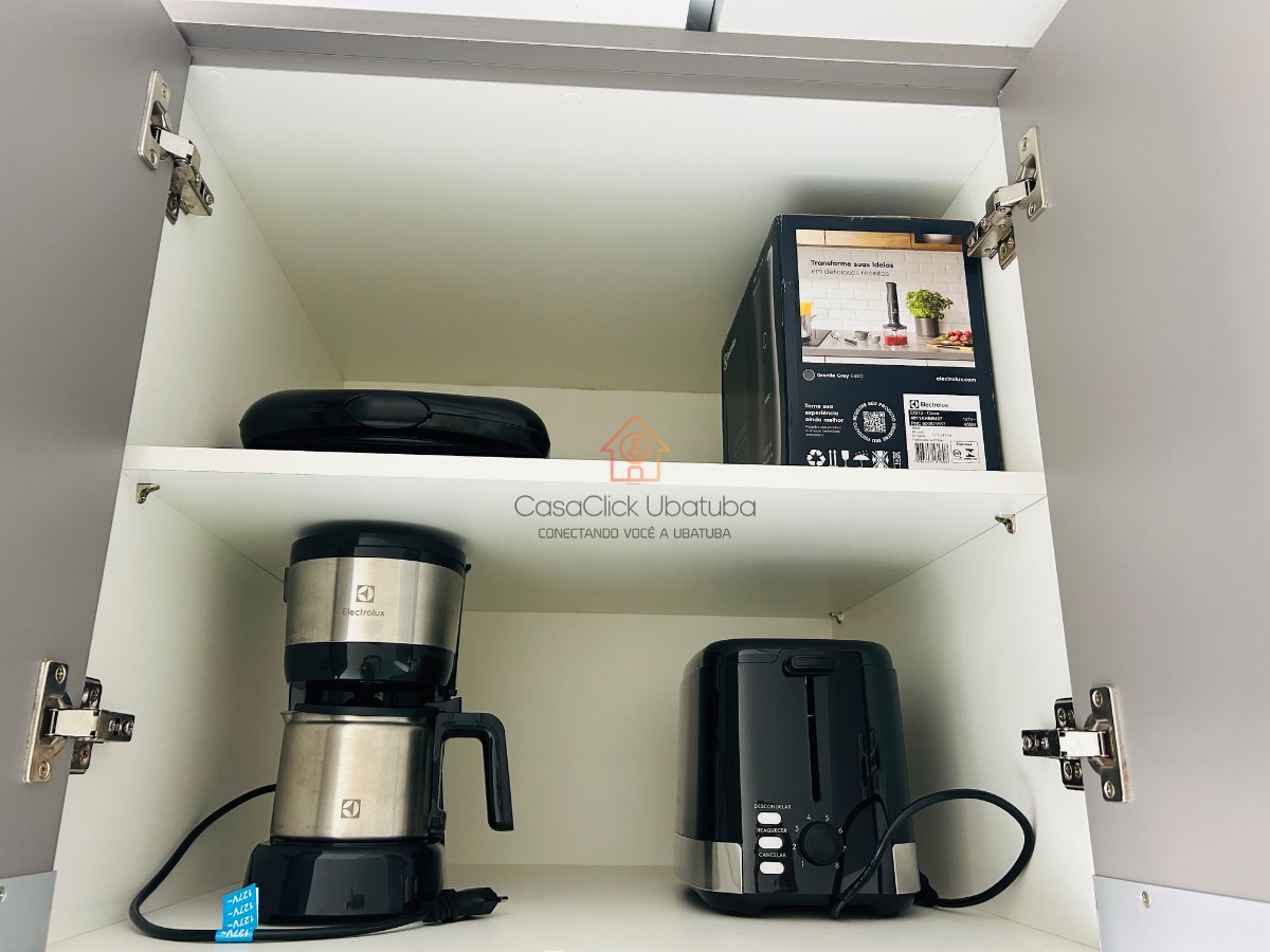 A cobertura é mobiliada e possui armário de cozinha, facilitando o dia a dia.
